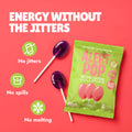 Serving Size: 1 Lollipop (7.5g) | Calories: 15 | Total Fat: 0g | Total Sugars: 0g | Caffeine: ~35mg.